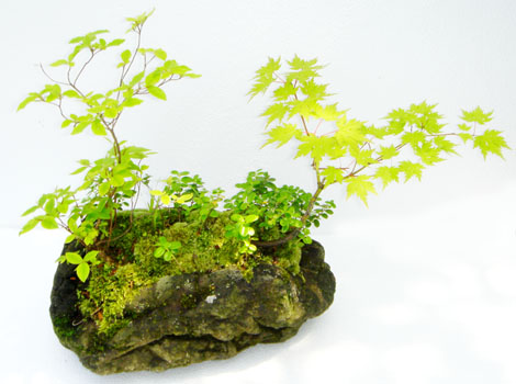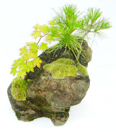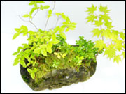 もみじ、赤松を重量感のある溶岩石に植え込み 苔がしっかり張り付くまで時間を掛けて管理した 手間隙かかった1点物の石付けです。 大自然の岸壁を石の上でイメージした 人気のある商品です。 もちろん毎年若葉の芽吹きから晩秋まで楽しめます。 商品サイズ:幅25×奥行22×高さ32cm 重さ 5kg 置き場所:適度に日の当たる明るい場所 |