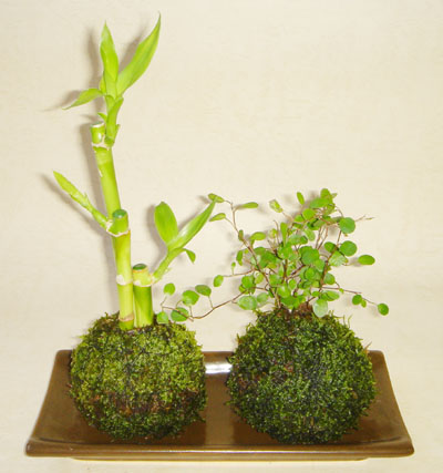 一枚の皿になごみ苔玉を2つ乗せたセットで