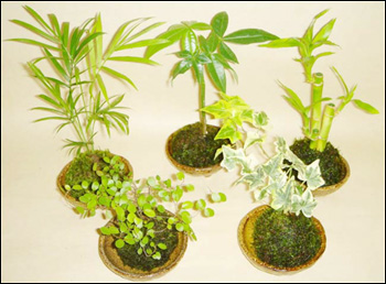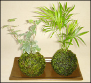 鮮やかな苔を贅沢に使ってこけ玉にしました。