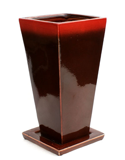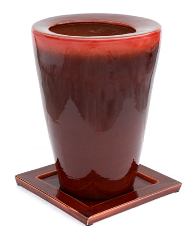 角皿付レッドラウンドロングポット