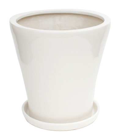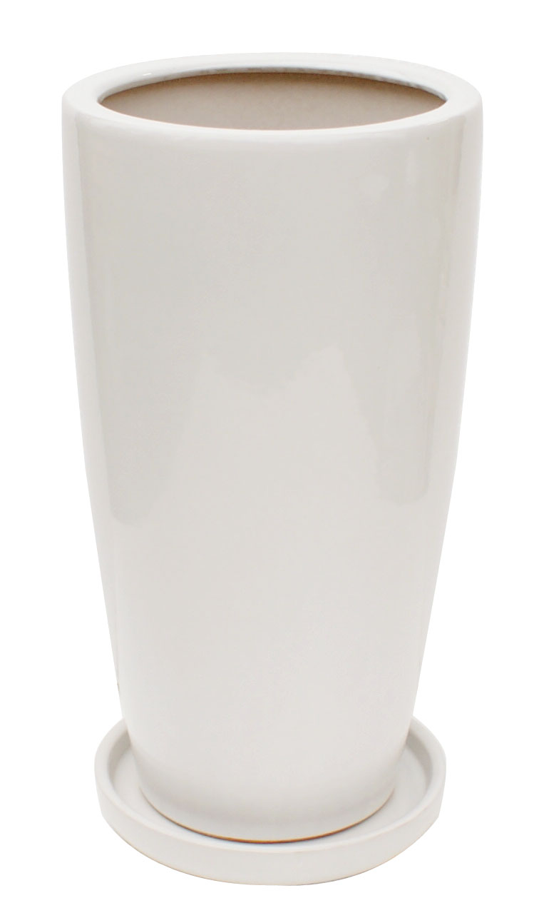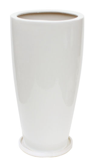 角皿付ホワイトラウンドロングポット
