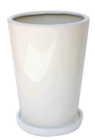 角皿付ホワイトラウンドトールポット