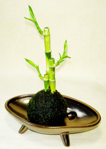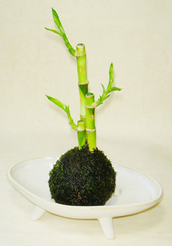 風水でも幸運の植物として人気のミリオンバンブーを 天然の鮮やかな苔を贅沢に使いこけ玉にしました。 和モダン、モダンアジアンといろいろなロケーションに 対応する心和ませる癒しのインテリアグリーンです。 こけ玉の直径:8×高さ20〜22cm 重さ 500g 管理方法 置き場所:強い直射日光を避け、明るい場所 耐寒性:10度以上で管理 水やり:苔に水分がなくなる前に水に浸け十分水を吸わせる(水切れに弱い)