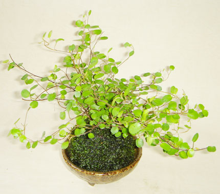 ワイヤープランツを天然の鮮やかな苔で苔玉にしました。