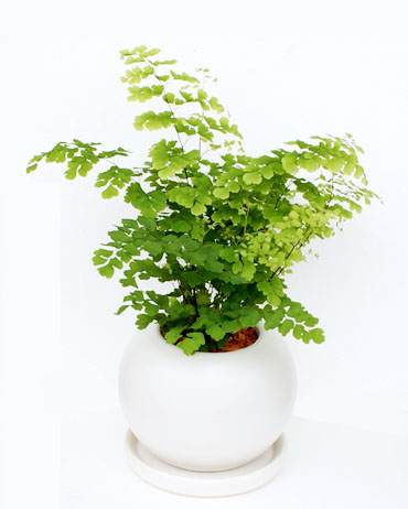 アジアンタム (Adiantum raddianum) 科名:ワラビ科アディアンツム属 原産地:熱帯 亜熱帯 温帯 葉がふわふわとして緑が美しく、夏は涼しげで人気があります。 アジアンタムの語源はギリシア語で「湿っていない」という意味ですが、 これは葉に水がかかっても水をはじいて濡れないところから きているという説があるグリーンです。