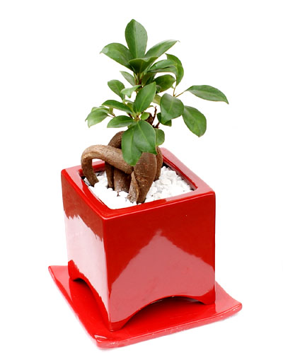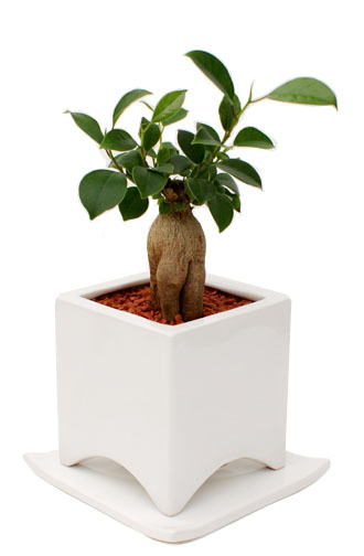 ソーサー付きのシンプルでモダンな各種陶器製ポットに植え表面は