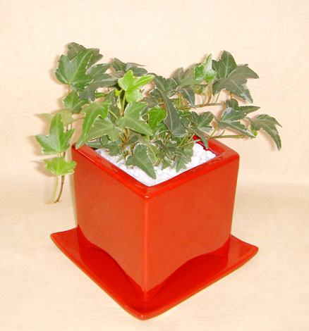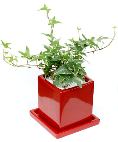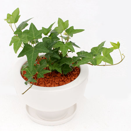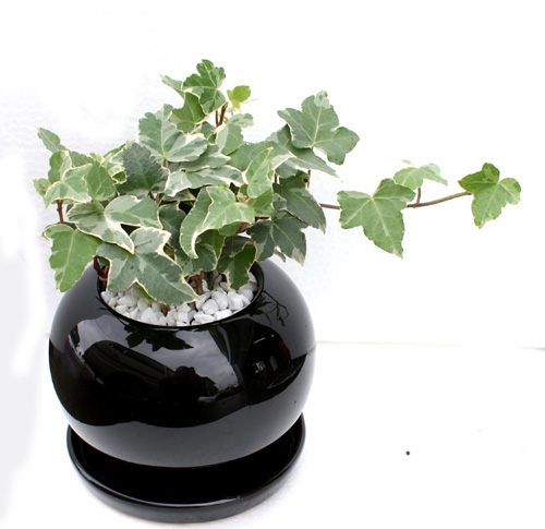 ソーサー付のシンプルでモダンな各種陶器製ポットに植え 表面はセラミス用土(レッド、ブラウン、ブラックはホワイトストーン) を敷き詰めました。 テレビドラマのお部屋に使われる様な かわいいインテリアグリーンです。