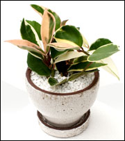 ソーサー付きのシンプルな各種陶器製ポットに植え 表面をセラミス用土(レッド、ブラウンはホワイトストーン) を敷き詰めました。 綺麗な葉が心を落ち着かせてくれるインテリアグリーンです。 ◎樹形には、個体差があります。ご了承の上御注文ください。 管理方法 置き場所:適度に日の当たる明るい場所。 耐寒性:寒さに強く5度以上で管理。 水やり:土が乾いてから与え、冬は控えめに与える。