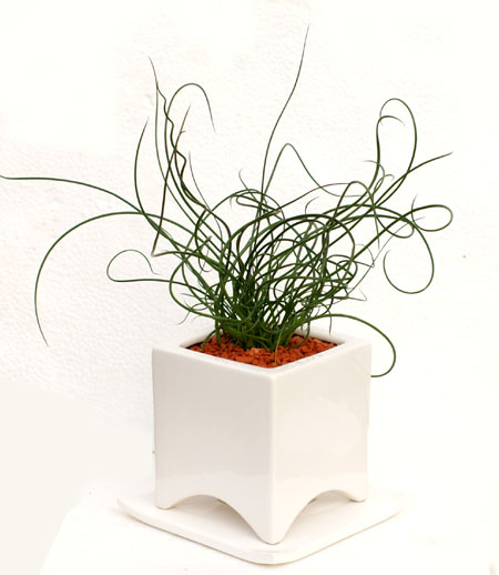ソーサー付のシンプルな各種陶器製ポットに植え表面に