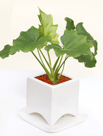 ソーサー付のシンプルでモダンな各種陶器製ポットに植え 表面にセラミス用土(ブラック、レッドはホワイトストーン)を 敷き詰めました。