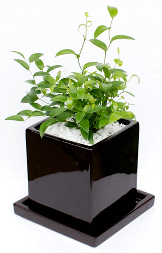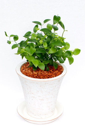 ソーサー付きのシンプルな各種陶器製ポットに植え 表面をセラミス用土(レッド、ブラウンはホワイトストーン) を敷き詰めました。 綺麗な葉が心を落ち着かせてくれるインテリアグリーンです。 ◎樹形には、個体差があります。ご了承の上御注文ください。 管理方法 置き場所:適度に日の当たる明るい場所。 耐寒性:寒さに強く0度以上で管理。 水やり:土が完全に乾いてから与え、冬はさらに控えめに与える。