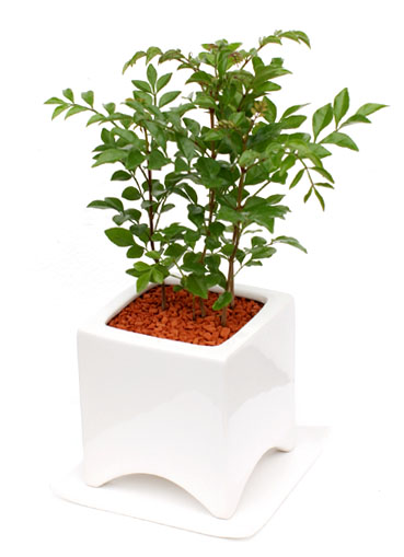 ソーサー付のモダンでシンプルな各種陶器製ポットに植え