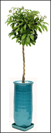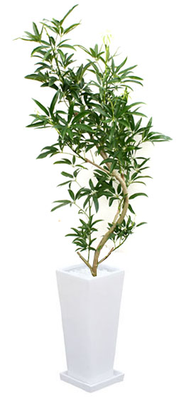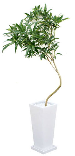 黄斑が少しだけ混じった緑葉のチェンマイになります。 ポットの名前をクリックすると 詳細を御確認いただけます。 角皿付ホワイトラウンドトールポット: 幅30×高さ40cm 全体:幅65〜70×高さ155〜160cm 重さ 14Kg 写真の枝分かれタイプの現品をお送りします。