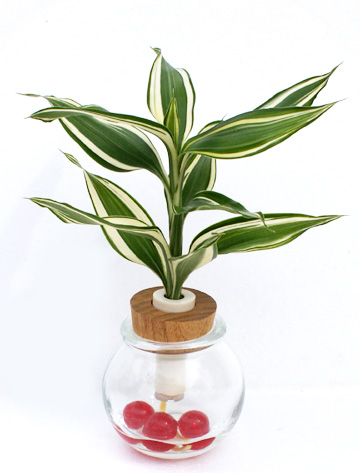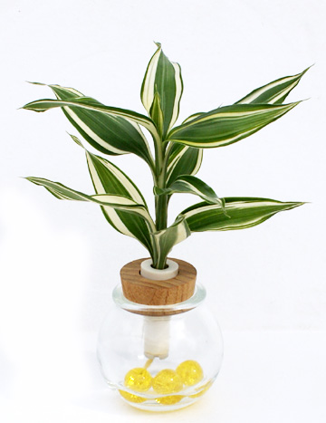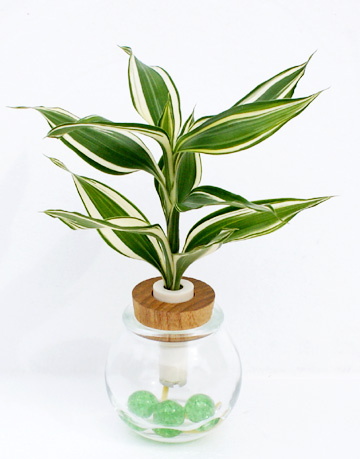 グリーンとホワイトのコントラストが美しい サンデリアーナ ビクトリーのハイドロカルチャーです。 砂漠の緑化技術を活かした新しいシステムの観葉植物で 土を使っておらず、オフィスのディスクや 部屋のインテリアなど室内に飾るのに最適です。 ガラス瓶に水を入れておくだけで、 吸水ヒモと特殊なセラミックを通して 植物自身が必要な空気や水を吸収するので 枯れにくい画期的なグリーンです。 ※樹形には個体差がありますのでご了承の上御注文下さい。 管理方法 置き場所:直射日光を避け、明るい場所 耐寒性:5度以上で管理 水やり:白いセラミックが水に浸からない程度水を入れ 少なくなったら足します。
