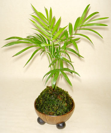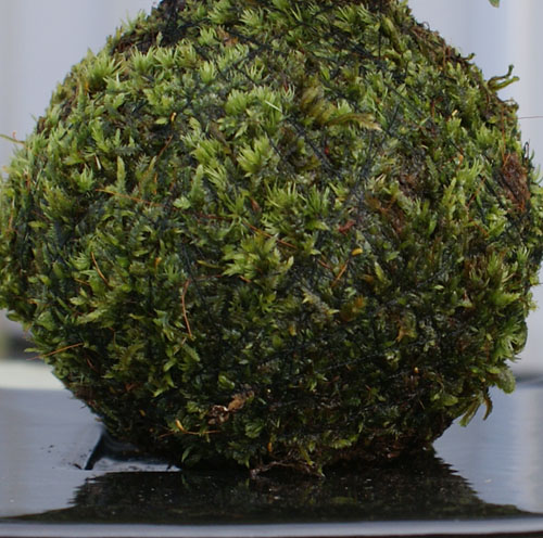 | 当店のこけ玉は 天然のみずみずしい苔を贅沢に 巻きつけています。 苔に似せた人工の 繊維とは違います。 |